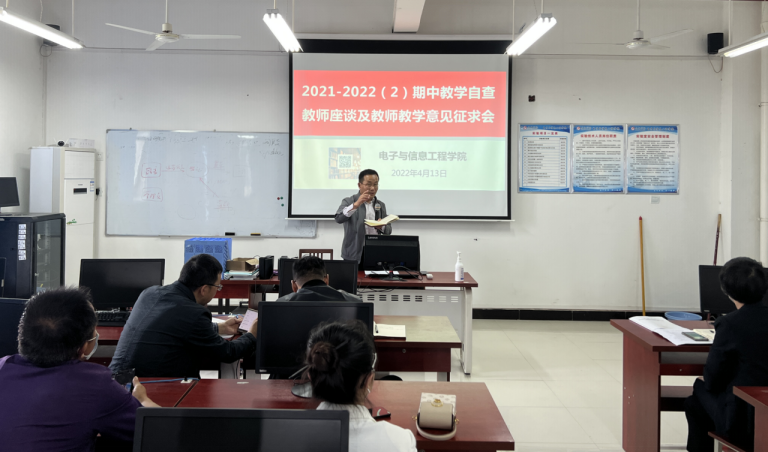 为认真贯彻落实教务处《关于开展2021-2022学年第二学期期中教学自查的通知》精神,4月13日下午,万象城娱乐awc线路在逸夫科技楼A504召开教师座谈及教师教学意见征求会。学院领导班子成员、全体教职工参加会议,会议学院副院长宋权华主持。