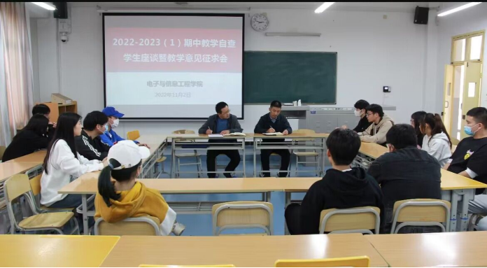 为认真贯彻落实教务处《关于开展2022-2023学年第一学期期中教学自查的通知》精神,深入了解学生学习生活动态,进一步加强学风教风建设,11月2日下午,万象城娱乐awc线路在江北校区一号教学楼1307教室召开学生座谈会。学院党总支副书记蔡正旺、副院长宋权华出席座谈会,2020级至2022级各班共30余名学生代表参加会议。