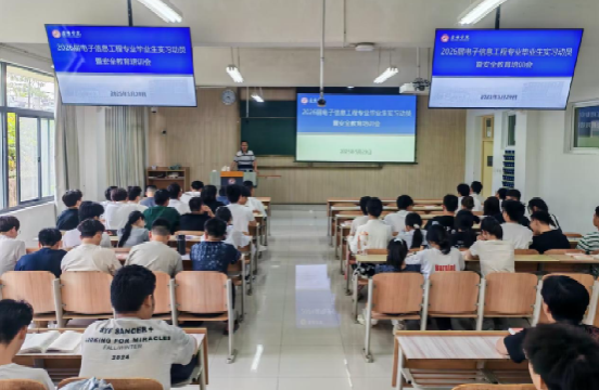 2025529日下午,电子信息工程专业2026届毕业生实习动员暨安全教育培训会在江北教学楼1119教室举行,毕业班辅导员张宇航及2026电子信息工程专业全体学生参加了大会,大会由电子工程系主任丁礼磊主持。