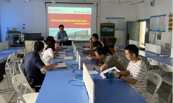 研讨活动中,系主任梁建勇首先汇报了计算机系上半年整体的教学工作情况,归纳了教学中存在的问题,并且安排部署了系里本学期待完成的工作内容。大家针对软件设计类课程教学过程中的问题和解决思路展开了讨论。副院长王克刚结合自己多年丰富的教学经验,提出充分利用现有计算机应用软件资源、加强信息数据共享、加强课堂管理、丰富过程性考核评价内容、高效开展教育教学工作,切实做到以学生为本、因材施教。