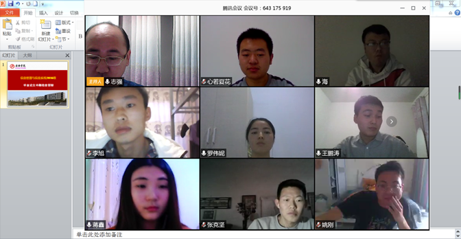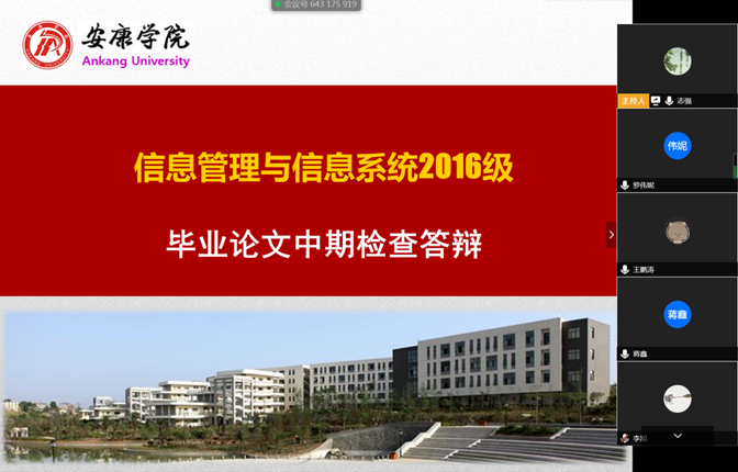 由于受新冠肺炎疫情影响,依据电子与信息工程学院2020届毕业论文(设计)的总体工作安排,按照信息管理系毕业论文工作进度要求,确保2020届信息管理与信息系统专业毕业生的毕业论文(设计)工作不因疫情而受严重影响,督促检查学生毕业论文(设计)进展情况,信息管理系各答辩小组精心组织安排、提前测试腾讯会议线上答辩平台,于4月12日前圆满完成信息管理与信息系统专业2020届毕业论文(设计)中期检查工作。