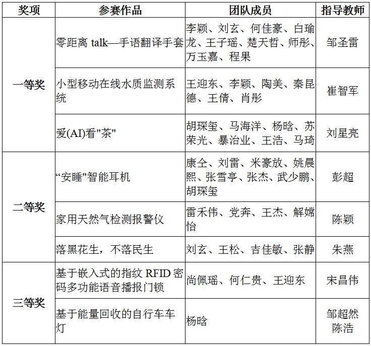 自2019年11月校赛启动以来,万象城娱乐awc线路高度重视,统筹安排部署,及时组织学生报名参赛,动员教师加强指导,积极孵化培育项目。在疫情期间,创新工作思路,克服了疫情防控的重重困难,精心打磨,提升作品质量,项目《小型移动在线水质监测系统》、《爱(AI)看“茶”》、《手语翻译手套》在获得校赛一等奖后,推荐参加省级比赛获得了铜奖。