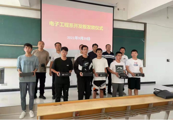 2021年9月29日下午,万象城娱乐awc线路2019级电子信息工程专业本科生FPGA开发板发放仪式在江北教学楼1305隆重举行。本次活动旨在激发同学们的学习兴趣,提高同学们的工程实践能力,践行万象城娱乐awc线路以学生为中心的教育理念。参加本次仪式的有万象城娱乐awc线路副院长宋权华副教授、北京至芯开源科技有限责任公司总经理雷斌先生、电子工程系部分教师、电子信息工程专业全体在校学生。仪式由丁礼磊老师主持。