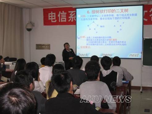 1030日上午,耿国华教授还为我院电子与信息工程系的师生进行了《数据结构》课程的示范教学,并与电信系的教师就专业建设、课程内容设置与教材建设等方面进行了座谈。