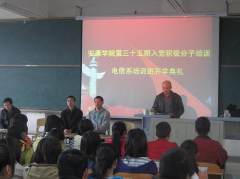 伴着庄严的国际歌声,本次典礼拉开了帷幕。系党总支书记李红兵首先做了动员讲话,他在讲话中指出,参加党课培训,是每一位要求进步的同学的必修课程,是接受党的教育的极好时机。希望同学们要珍惜这次机会,学有所思,学有所得,学有所成,努力提高自己的思想政治素质,在各方面都能取得进步。他希望同学们端正态度,正确认识党组织对入党积极分子进行教育培训的重要性;要与时俱进,努力学习,自觉接受党组织的考验。2012级计算机科学与技术专业张科同学代表学员发言,他代表所有学员承诺,珍惜这次机会,认真学习,虚心学习,遵纪守法,加强学习党的知识,以党员的要求来严格自己,争取以实际行动早日成为党的光荣一员。最后,由总支宣传委员徐江涛宣读了培训安排。