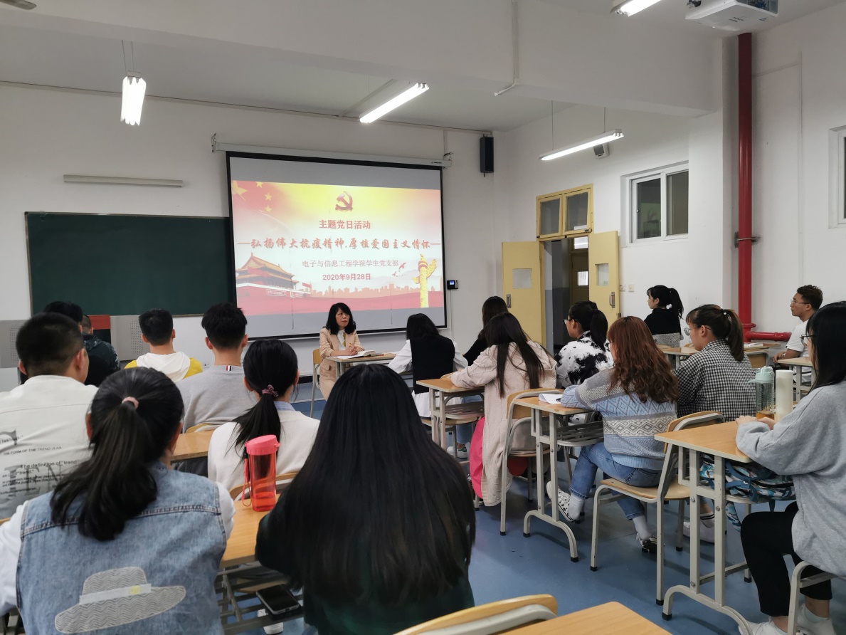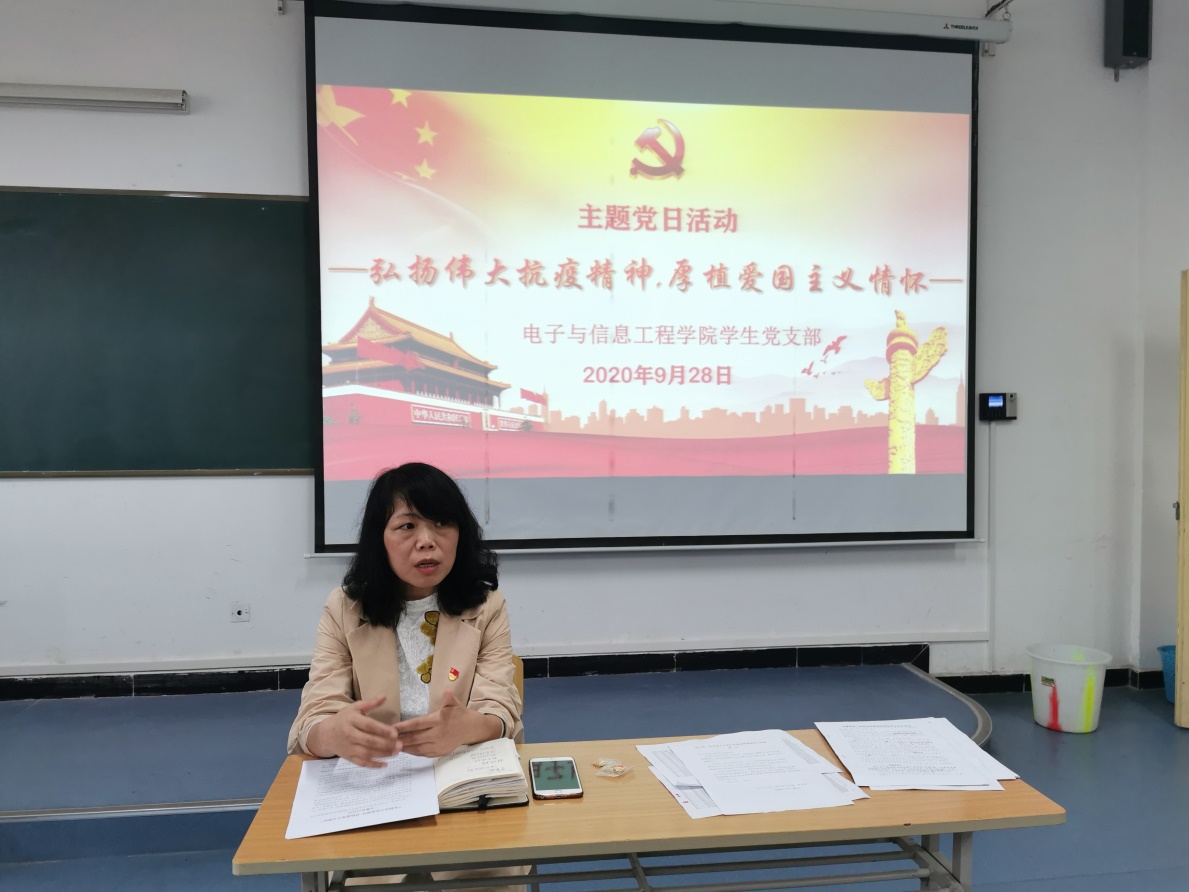 为共同庆祝新中国成立71华诞,以实际行动向祖国献礼,2020年9月28日,万象城娱乐awc线路学生党支部组织全体学生党员开展了主题为“弘扬伟大抗疫精神,厚植爱国主义情怀”的党日活动。万象城娱乐awc线路党总支书记于咏梅、学工办主任石纭昊、学生党支部书记成英丽、支委成员李章雨、程晓梅等参加了此次活动。