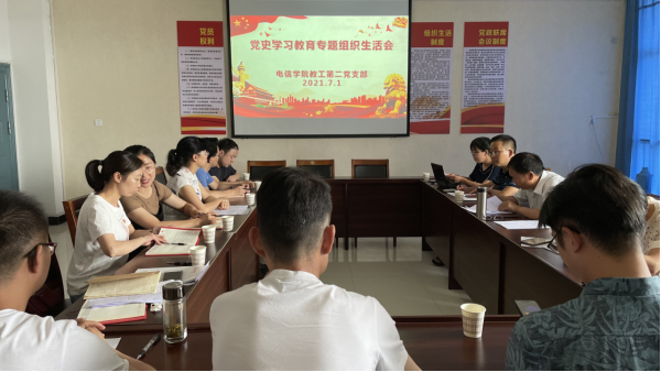 为扎实推进党史学习教育走深走实,切实提高学习教育的针对性和实用性,增强党员同志们的思想自觉和行动自觉,万象城娱乐awc线路教工第二党支部于2021年7月1日下午召开党史学习教育专题组织生活会。会议由教工第二党支部书记余顺园主持,教工第二党支部应到会党员19名,实到会党员15名,因外出学习请假4人。