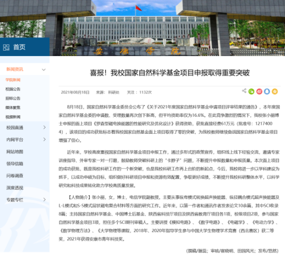青年教师张小丽博士获批国家自然科学基金面上项目