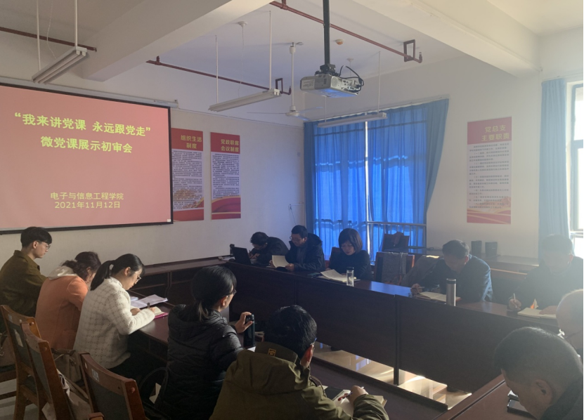 根据学校党委关于党史学习教育的工作部署,认真落实党委组织部“我来讲党课·永远跟党走”微党课展示评比活动文件要求,万象城娱乐awc线路党总支高度重视,积极组织下设四个党支部精心制作微党课,各党支部也召开支委会充分沟通、精心选题、选好主讲人、撰写文稿、制作PPT。11月12日下午14:30,万象城娱乐awc线路党总支组织召开“我来讲党课·永远跟党走”微党课展示初审会,各支部推荐一名党员现场讲授党课。万象城娱乐awc线路党总支书记于咏梅、院长陈守满、副院长王克刚、党总支副书记蔡正旺、两办主任、党总支成员及各支部书记、支委出席。