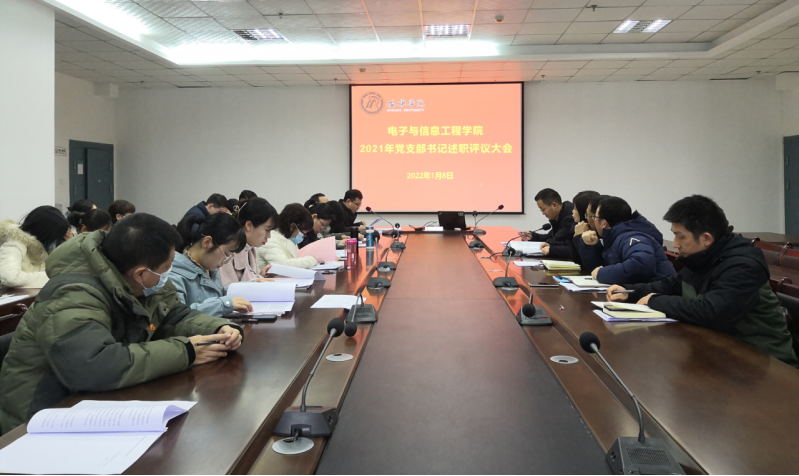 根据《关于做好2021年度基层党建述职评议考核工作的通知》(校党发〔2021〕136号)文件精神,电子与信息工程学院党总支于2022年1月8日下午在科技楼九楼大会议室召开党支部书记述职评议大会。学院领导班子成员、全体教师党员及部分学生党员参加会议,党总支书记于咏梅主持会议。