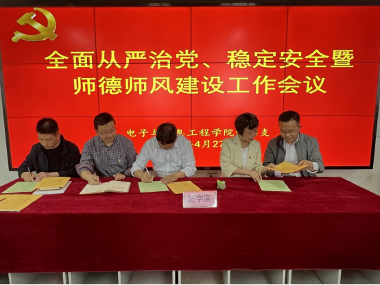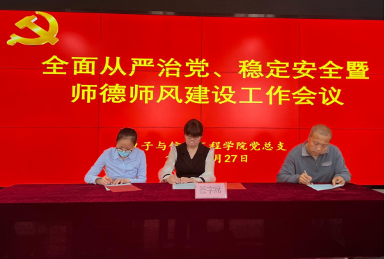 院长陈守满首先传达了学校警示教育大会会议精神,通报十九大以来陕西省高校违反党纪党规典型案例,要求大家切实加强理想信念教育,严守纪律与规矩,严以修身、严于律己,做个讲政治的人。其次,陈守满传达了稳定安全工作会议精神,强调要抓实抓细工作责任,签订万象城娱乐awc线路稳定安全工作责任书,切实维护校园稳定安全;最后,陈守满传达上级关于师德师风建设和学校文件精神,并宣读《电子与信息工程学院2022年师德师风建设活动实施方案》,要求大家提高政治站位,突出重点,务求实效,监督考核,常抓不懈,做好凝心铸魂、立德树人本职工作。