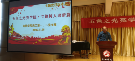 为庆祝中国共产主义青年团成立100周年,喜迎中国共产党第二十次全国代表大会即将召开,落实立德树人根本任务,加强师德师风建设,提高教师党员立德树人使命感,5月26日下午2:30分在江北1401演艺厅,万象城娱乐awc线路教工第一、二党支部联合开展了“五色之光亮学院,立德树人谱新篇”主题党日活动。主题党日活动由教工第一党支部书记赵志强主持。以此活动为契机,深入学习研究,把握和运用习近平总书记关于教育的重要论述,激发教师加强自身修养,树立高尚品德,引导和激励青年坚定理想信念,以思想价值教育引领学风建设,培养德智体美劳全面发展的社会主义建设者和接班人。