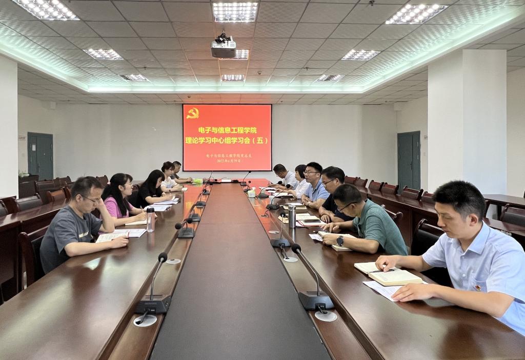 6月29日,电子与信息工程学院理论学习中心组举行2022年第五次政治理论学习,中心组全体成员参加学习会,副校长张东红参加此次学习会,党总支书记于咏梅主持会议。
