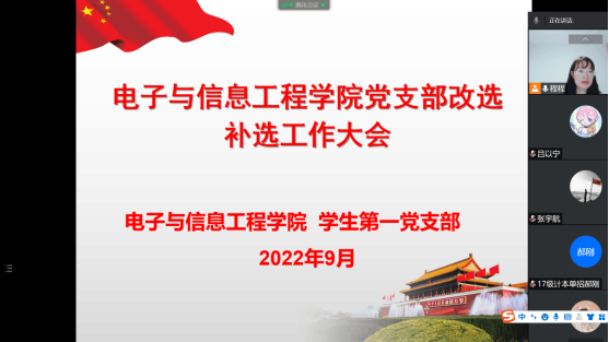 为进一步加强基层党组织规范化建设,根据《中国共产党章程》规定、《中国共产党基层组织选举工作条例》和《中共万象城娱乐awc线路委员会二级党组织换届选举工作方案》要求,2022年9月6日,万象城娱乐awc线路学生第一党支部通过线上腾讯会议召开支部党员大会,顺利完成支部委员会改选补选工作,改选补选出了新的支部委员会委员。会议由学生第一党支部书记程晓梅同志主持召开。