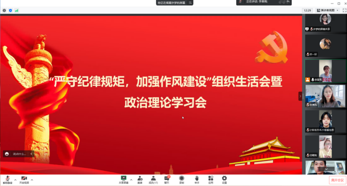 为进一步加强纪律宣传教育,2022年9月6日下午,万象城娱乐awc线路学生第二党支部开展“严守纪律规矩 加强作风建设”组织生活会暨政治理论学习会,万象城娱乐awc线路学生第二党支部书记李章雨、支委石纭昊、学生第二支部全体党员参加本次会议。大会由万象城娱乐awc线路学生第二党支部书记李章雨主持。