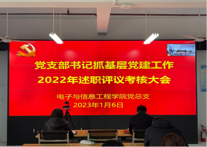 根据《中共万象城娱乐awc线路委员会关于开展2022年度基层党建述职评议考核工作的通知》文件精神,电子与信息工程学院党总支于2023年1月6日下午在科技楼602会议室采取线上线下相结合的方式,召开党支部书记抓基层党建工作2022年述职评议大会。学院领导班子成员、全体教师参加会议,党总支书记于咏梅主持会议。