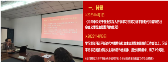 随后,为深入开展学习贯彻习近平新时代中国特色社会主义思想主题教育,教工第一党支部书记赵志强以“牢牢把握主题教育的总要求”为题为全体教师讲党课。他主要从学思想、强党性、重实践、建新功四个方面进行介绍,希望广大教师要全面学习领会习近平新时代中国特色社会主义思想,全面贯彻党的二十大精神,做到学思想、见行动,突出问题导向,查找不足并不断增强党性修养。