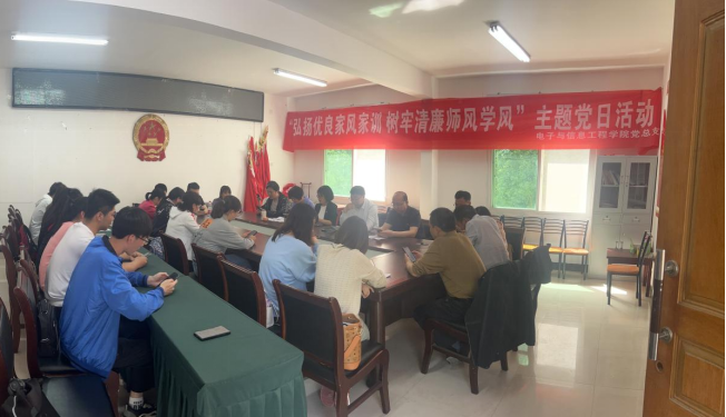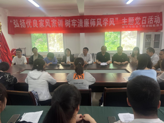 为了深入学习贯彻党的二十大精神,为落实立德树人根本任务营造风清气正的政治生态,在打造清廉学校中积极探索推进优良党风、师风、家风一体化建设,涵养清正校风、教风、学风,构筑新时代清正廉洁的教育高地。4月15日,万象城娱乐awc线路党总支开展“弘扬优良家风家训 树牢清廉师风学风”主题党日活动,党委委员、副校长张东红,党总支下设四个党支部所属党员及教职工、部分学生党员参加。万象城娱乐awc线路党总支书记于咏梅主持活动。
