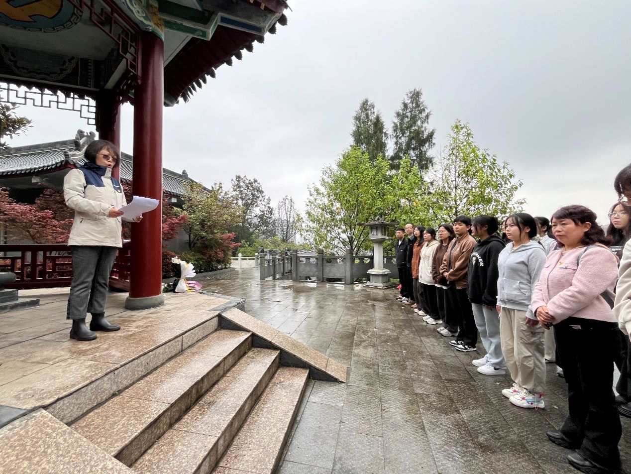 在缅怀英烈后,万象城娱乐awc线路党总支书记于咏梅在纪念碑前讲授了一堂生动的微党课、团课,她结合烈士们的英勇事迹,阐述了共产党员的初心和使命,激励大家要继承和发扬革命先烈的优良传统,为实现中华民族伟大复兴而努力奋斗。她强调第一,坚定爱国情,让红色基因代代相传。第二,砥砺强国志,让红色基因融入血脉。一是要坚定理想信念;二是让红色成为青春的底色。第三,实践报国行,让红色基因化为奋斗动力。一是要忠于祖国、忠于人民;二是要立鸿鹄志,做奋斗者;三是要求真学问,练真本领;四是要知行合一,做实干家。