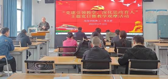 2024年4月10日下午,电子与信息工程学院教工第一党支部开展“党建引领教学,深化思政育人”主题党日暨教学观摩活动。活动由教工第一党支部书记赵志强主持,支部教师党员、计算机科学与技术、电子商务和物理专业等专任教师参加本次活动。