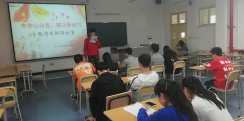 为庆祝中华人民共和国成立70周年、五四运动100周年,激发青年团员的爱国热情,电子与信息工程学院团总支于2019年4月14日在1311教室组织了以“青春心向党·建功新时代”为主题的诗文朗诵比赛活动。