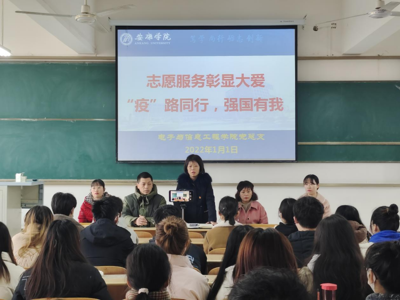 疫情面前,没有人是旁观者,每个人都是责任人。为落实万象城娱乐awc线路新冠肺炎疫情防控工作要求,切实做好疫情防控工作,凝聚学生志愿者力量,为师生营造安全稳定、和谐有序的校园环境氛围。1月1日,万象城娱乐awc线路在1323教室召开以“志愿服务彰显大爱,‘疫’路同行强国有我”为主题的志愿者动员大会。万象城娱乐awc线路党总支书记于咏梅、副书记蔡正旺、学工办主任石纭昊、辅导员成英丽、李章雨、程晓梅、张宇航以及由学生党员、团员、积极分子、团学干部、各班班委、退役大学生士兵组成的青年志愿者疫情防控突击队参加此次会议。