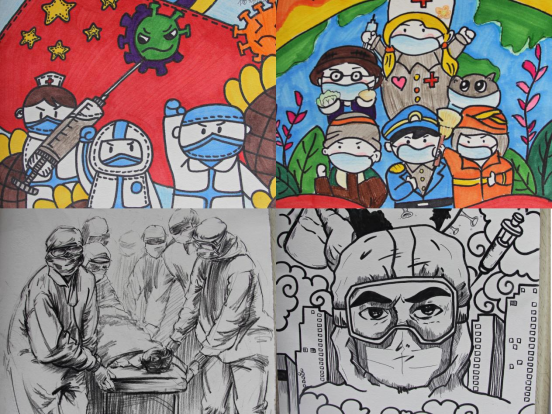 2020年初,一场突如其来的新冠肺炎疫情席卷全球。停业、停产、停工、停课,停止一切不必要的聚集性活动。转瞬之际,社会生活的许多层面进入暂停状态。抗击新冠肺炎疫情成为两年多以来中国社会经历的最为紧迫而重要的事情。为歌颂防疫志愿者及一线工作人员舍身忘我、忠诚担当的英雄主义精神,彰显全国人民万众一心、同舟共济中国精神,展现中华儿女面对疫情充满信心、敢于胜利的积极乐观精神。3月10日万象城娱乐awc线路在全校范围内开展了弘扬抗疫精神主题美术作品征集活动。本次活动共收到作品107副,其中部分优秀作品如下: