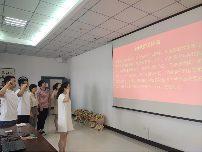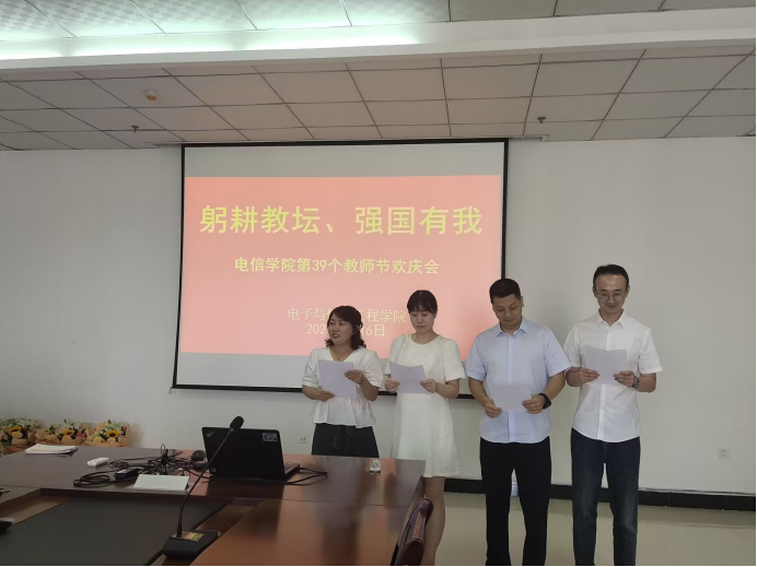 新教师是注入教师队伍的新鲜血液,是实现教育强国的中流砥柱。在白静华老师的带领下,新进老师们进行了入职宣誓,在一句句铿锵有力的宣誓词声中,感受到新进教师们对教师工作的热情和向往。在之后的活动中,教师代表白静华老师演唱了歌曲——《每当我轻轻走过你窗前》,“每当我轻轻走过你窗前,明亮的灯光照耀我新房”这是老师为教育事业呕心沥血的真实写照。在这个特别的日子里,白老师用这首歌来感恩老师们的辛勤付出。随后学工团队成英丽等4位老师为大家带来诗朗诵——《我骄傲,我是一名教师》,“我是一名教师,无怨于自己的奉献、无悔于自己的选择,我骄傲,我是一名教师”,相信这是所有教师内心深处最真实的想法,让每一位在座老师深深地感到骄傲与自豪。最后学生代表22级电子商务1班王建晨为大家带来的歌曲《母亲》,向全院教师表达了节日的祝福。