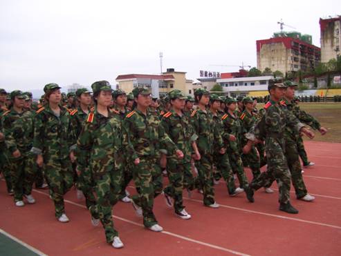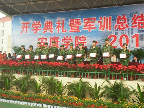 万象城娱乐awc线路2011级新生军训工作圆满结束。在这次军训中由计算机科学与技术、数字媒体技术、计算机应用技术、供用电技术、应用电子技术5个专业111名学生组成的“军训4连”克服连阴雨、疾病等困难,严格按照军训要求,坚持训练,出色的完成了训练任务,有8名学生获得“军训标兵”称号,全连荣获“先进集体”光荣称号。