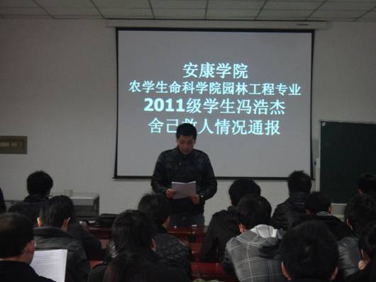 学生支部副书记王恒首先介绍了冯浩杰同学舍己救人的英雄实际,并宣读了学院党委关于向冯浩杰学习的决定,随后同学们踊跃发言。大家认为,冯浩杰是新时代舍己救人的典范,是对当代大学生道德风尚的诠释。李红兵书记也谈到,冯浩杰是当代大学生见义勇为的典范,他不仅仅是舍己救人,他救的是一种精神一种信念。李书记希望同学们要学习冯浩杰舍己救人的精神,不断提高自己的思想道德素质,要努力学习科学文化知识,自觉成人成才,报效祖国和人民;要进一步增强责任感,做一个敢于担当的大学生。