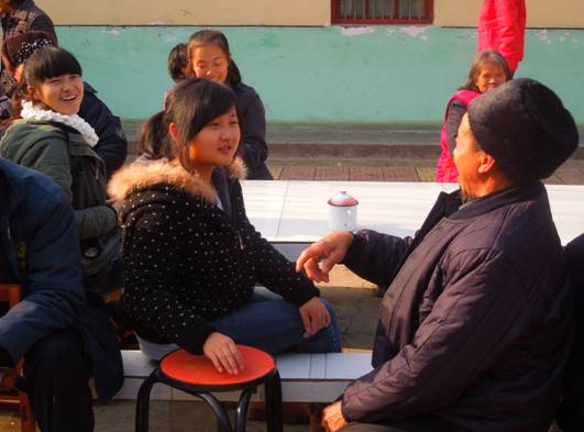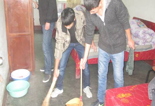 大家一踏进敬老院就迎来了老人们和蔼的笑脸,在带队老师的安排下,打扫、整理屋子井然有序进行着,收拾完毕,同学们有的陪老人聊天回忆美好的往事,有的为敬老院的老人们表演节目、开联欢。