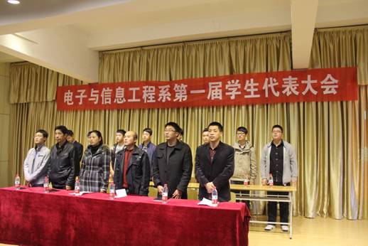 11月11日,电子与信息工程系第一届学生代表大会在江北校区1401演艺厅隆重举行。全系161名学生代表参加了会议,校团委副书记肖红香,系主任张东红,系总支书记李红兵,系学办全体辅导员,院学生会主席张琨,副主席苏军欢,农学与生命科学学院学生分会主席张锐,政治与历史系学生分会主席雷彭波,经济与管理系学生分会主席贾俊康出席会议。