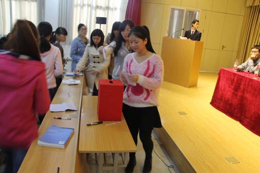 大会审议通过了第二十六届学生分会的工作报告,本次学代会共有20名同学参加学生分会委员的竞选,他们利用PPT的方式向代表们进行了自我介绍。各位代表认真履行自己的职责,本着明主、公平、公正的原则,采用无记名投票的方式产生了第二十七届学生会干部,有17名同学当选第二十七届学生会委员会成员。