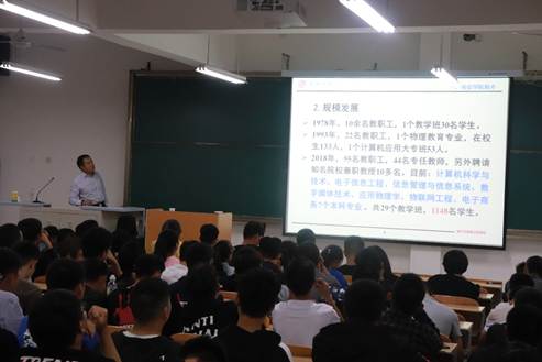 9月25日晚万象城娱乐awc线路在1301教室举行新生入学教育。参会的有副院长王庆春,辅导员陈浩,2018级全体新生。