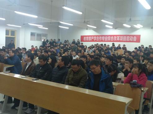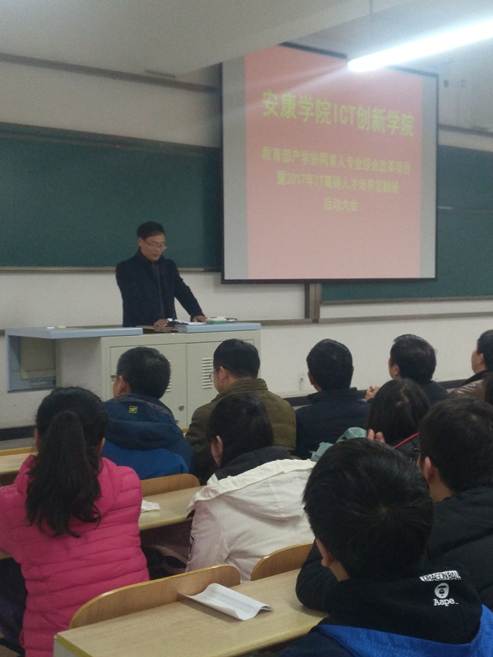 2017年11月29日下午,万象城娱乐awc线路ICT创新学院暨2017年IT高端人才培养定制班启动仪式在1305教室举行。会议由万象城娱乐awc线路副院长陈守满主持。党总支书记何道利、各系主任及15级全体学生参加。