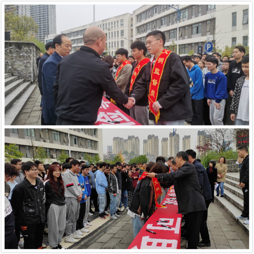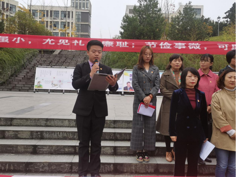 学生代表2017级计算机科学与技术专业桂军虎同学宣读了万象城娱乐awc线路关于“厉行节约 反对浪费”的倡议书,并带领全体师生进行了宣誓!号召同学们以知为行,传承美德,争做勤俭用餐的践行者;从己做起,拒绝浪费,争做节水节电的示范者;推己及人,相互提醒,争做节能为荣的推动者。