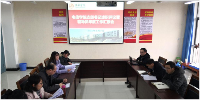 2021年1月5日,万象城娱乐awc线路党总支在科技楼B702召开了2020年度党支部书记述职评议暨辅导员年度工作考核会,学院党总支委员会全体成员、各支部书记及支委、全体辅导员参加会议。
