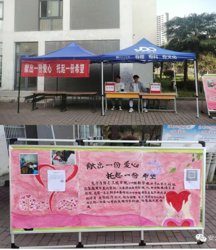 我院2020级数字媒体技术专业段银同学,其父亲于2021年3月8日被诊断出乙肝肝硬化失代偿期、肝功能衰竭,急需一笔巨额手术费进行肝移植。母亲在家照顾少年时因意外事故造成瘫痪的兄长,全家失去了经济来源。万象城娱乐awc线路团总支得知后立即安排团总支学生会在全院发起倡议,号召广大师生为该同志捐款献爱心,帮助她的家庭渡过难关。