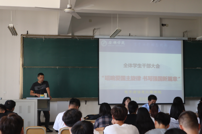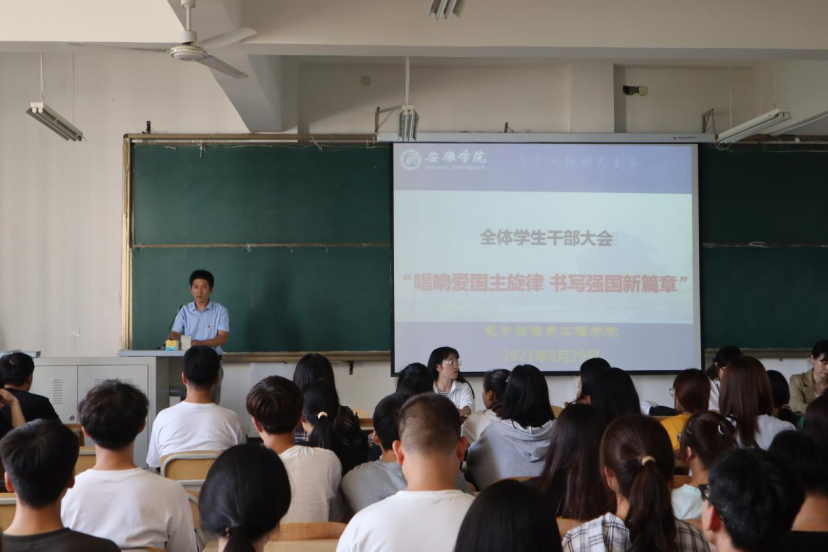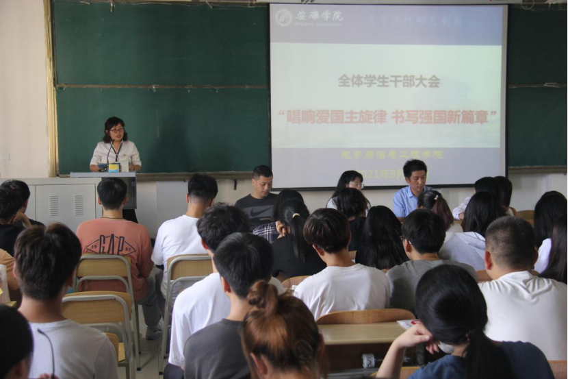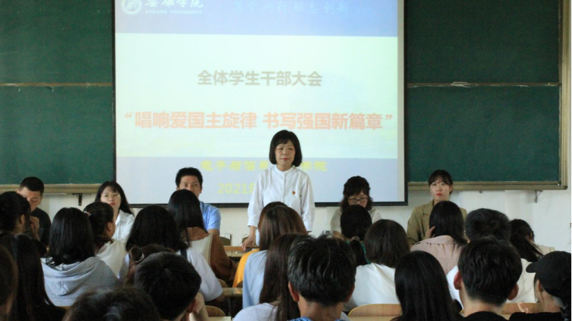 为庆祝中华人民共和国成立72周年,引导广大青年学生自觉践行社会主义核心价值观,涵养家国情怀,增强感恩意识,以实际行动向国庆献礼。9月29日下午2:30,在江北校区1301教室万象城娱乐awc线路党总支书记于咏梅以“唱响爱国主义旋律,书写强国新篇章”为主题为广大电信学子讲党课、团课。万象城娱乐awc线路在校学生党员、本届团总支、学生会主要干部及2019、2020、2021级主要干部、宿舍长200余人参加大会。党总支书记于咏梅,党总支副书记蔡正旺,学工办主任石纭昊,党总支组织委员成英丽,学生第一党支部书记程晓梅,学生第二党支部书记李章雨出席大会。大会由石纭昊主持。