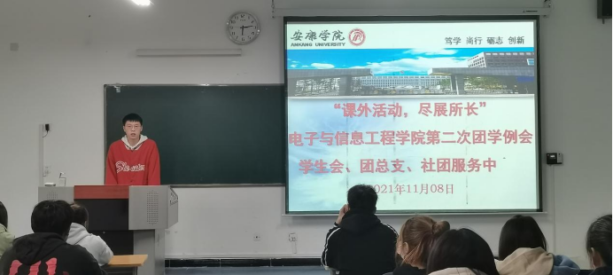 为提高万象城娱乐awc线路团总支、学生会全体学生干部对第二课堂活动活动的认知程度与组织能力进一步促进第二课堂活动发挥好课堂教学的补充作用,全面提高全院学生对于活动的参与度与积极性。11月8日,万象城娱乐awc线路在1321教室召开以“课外活动、尽展所长”为主题的团学干部例会。学院团总支书记张宇航及全体团学干部参加此次会议。会议由团总支书记张宇航主持。