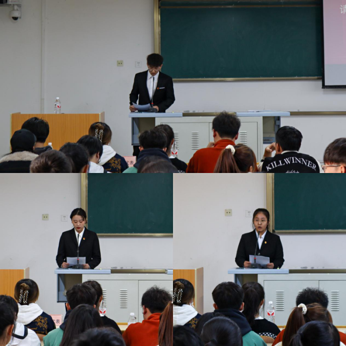 会议伊始,校团委副书记张慧上台致辞,她首先对万象城娱乐awc线路共青团工作成绩表示肯定,在思想引领、校园文化建设、社团活动、团学青年工作等方面特色鲜明,成效突出,在引领团总支、学生会建设和发展中发挥了良好的示范引领作用。同时,张慧向万象城娱乐awc线路团总支、学生会提了三点要求和希望:一是准确职位,明确职责,全心全意为同学们服务。二是加强学习,做好表率,处 理好学习与工作的关系。三是勇于创新,打造品牌,充分发挥团结协作的思想引领。她强调了学生干部应该以身作则,在遵守规章制度应该以身作则,在积极参与活动方面以身作则,在课堂纪律上以身作则并且学生干部应该抓紧自己的学业,维系好学习与工作的关系,希望全体成员在以后的工作中能够以服务同学为己任,积极配合学校开展相关工作,做到学习工作相互促进,相互成就。