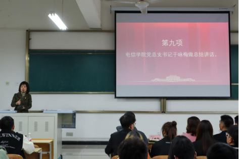最后,电子与信息工程学院党总支书记于咏梅做总结讲话。她首先讲到,对于正在召开的十九届六中全会,广大学生干部及在座各位老师应该加强学习,学习会议内容,领悟会议精神。于咏梅指出党的十九届六中全会是一次在重大历史关头召开的具有重大历史意义的会议,在建党百年之际,党中央召开六中全会,全面总结党的百年奋斗重大成就和历史经验,是郑重的历史性、战略性决策,体现了我们党重视和善于运用历史规律的高度政治自觉,体现了我们党牢记初心使命、继往开来的自信和担当。于咏梅向全体学生干部提出了如何做好学生干部、学生干部应该注意什么的问题,并对万象城娱乐awc线路学生组织提出了三点要求: