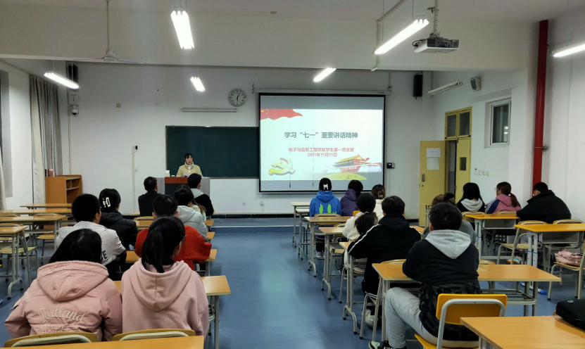 在百年奋斗历程中,我们党领导人民取得了举世瞩目的辉煌成就,书写了波澜壮阔的历史画卷,留下了弥足珍贵的宝贵经验和精神财富。为扎实推进党史学习教育,从党的百年奋斗历程中汲取奋进力量,11月11日下午,电子与信息工程学院学生第一党支部支委、全体在校党员及发展对象开展了关于“七一讲话”精神和十九届六中全会精神为主题的主题党日活动。本次会议由万象城娱乐awc线路学生第一党支部书记程晓梅主持。