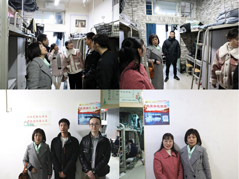 12月8日,万象城娱乐awc线路党总支书记于咏梅与全体学工团队成员组成评委小组对宿舍整体情况进行评价与指导