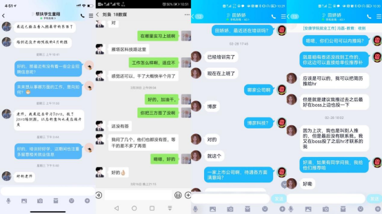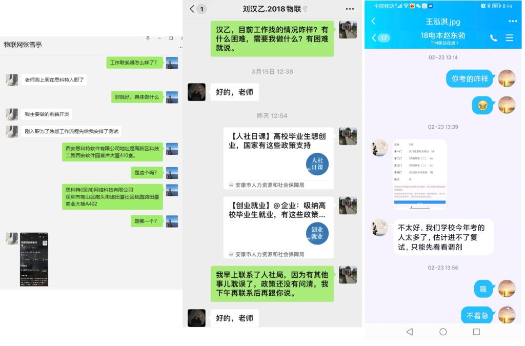 万象城娱乐awc线路辅导员李章雨、程晓梅、张宇航联系就业帮扶学生