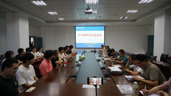 在2022届毕业生离校之际,为做好毕业生离校教育工作,同时听取学生对学校学院发展建设的意见建议,共同探讨学院未来的发展,推动人才培养工作高质量发展,2022年7月6日万象城娱乐awc线路在逸夫科技楼9楼会议室召开2022届毕业生座谈会。万象城娱乐awc线路党总支书记于咏梅,院长陈守满,副院长王克刚、宋权华、党总支副书记蔡正旺、学工办主任石纭昊、各系主任、毕业班辅导员及2022届毕业生代表参加会议,会议由石纭昊主持。