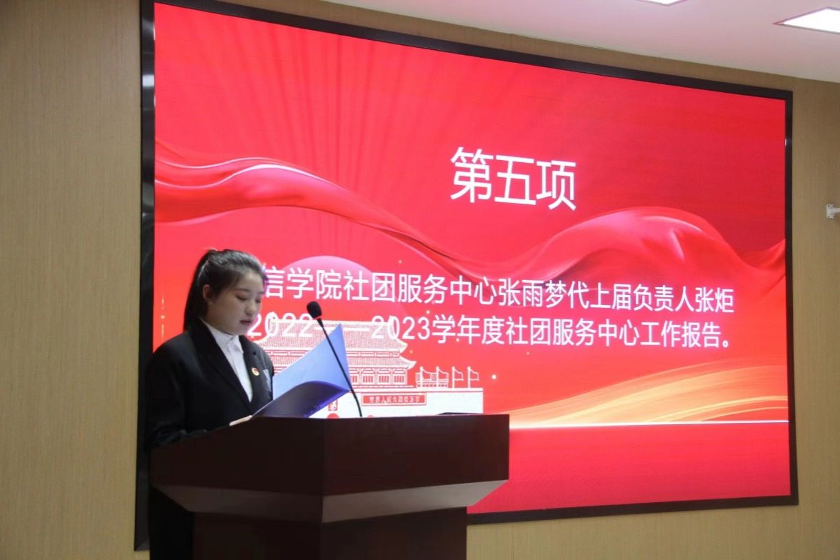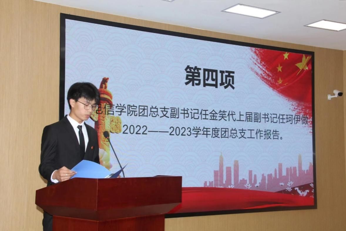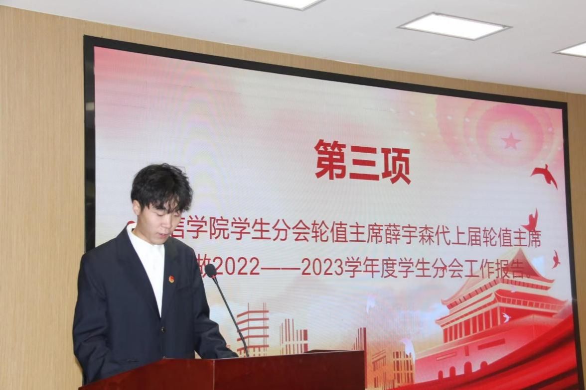 伴随着庄严的国歌声,会议正式开始。本次会议分为两个阶段,第一阶段为2022—2023学年度万象城娱乐awc线路团总支、学生会、社团服务中心负责人做工作总结。他们立足本职工作,坚持问题导向,不断加强与学院领导、老师及其他同学的沟通,持续推进学院各项工作的高效开展。全体团学组织成员干在实处、走在前列,将“取其精华,去其糟粕”的观念和“为同学服务”的宗旨根植在每位学生干部的内心深处。