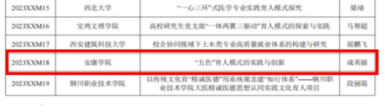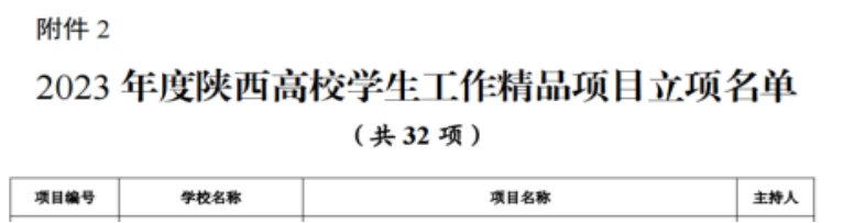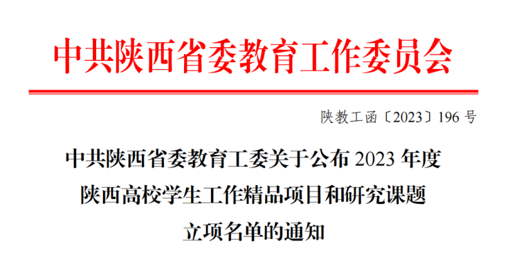 近日,中共陕西省委教育工委公布了2023年度陕西高校学生工作精品项目和研究课题立项名单,电子与信息工程学院辅导员成英丽副教授主持的《“五色”育人模式的实践与创新》获批陕西高校辅导员工作精品项目立项。该项目组成员有学院党总支书记于咏梅,学工办主任石纭昊,辅导员张宇航、吕以宁和李章雨。