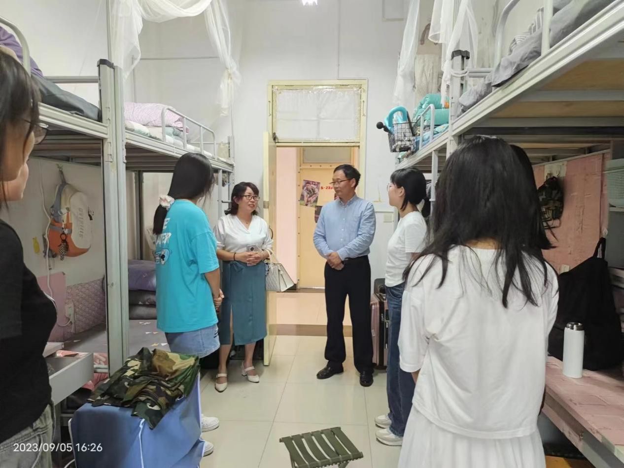新学期、新征程、新起点、新希望。为推动新学期学生教育管理工作有序开展,进一步加强新生宿舍管理,帮助新生适应大学宿舍环境。9月5日,万象城娱乐awc线路院长陈守满,党总支书记于咏梅,副院长王克刚、宋权华,党总支副书记蔡正旺,辅导员成英丽分别走访4、5、6、7号学生公寓,看望万象城娱乐awc线路2023级全体新生。