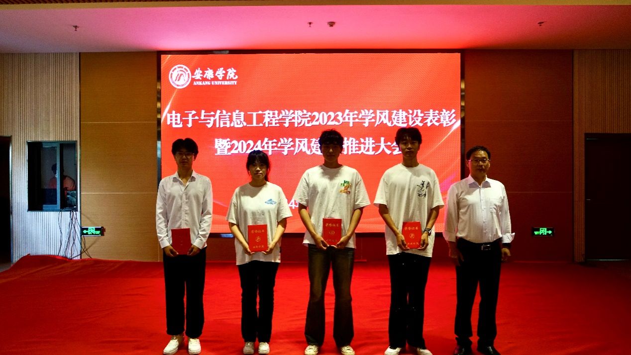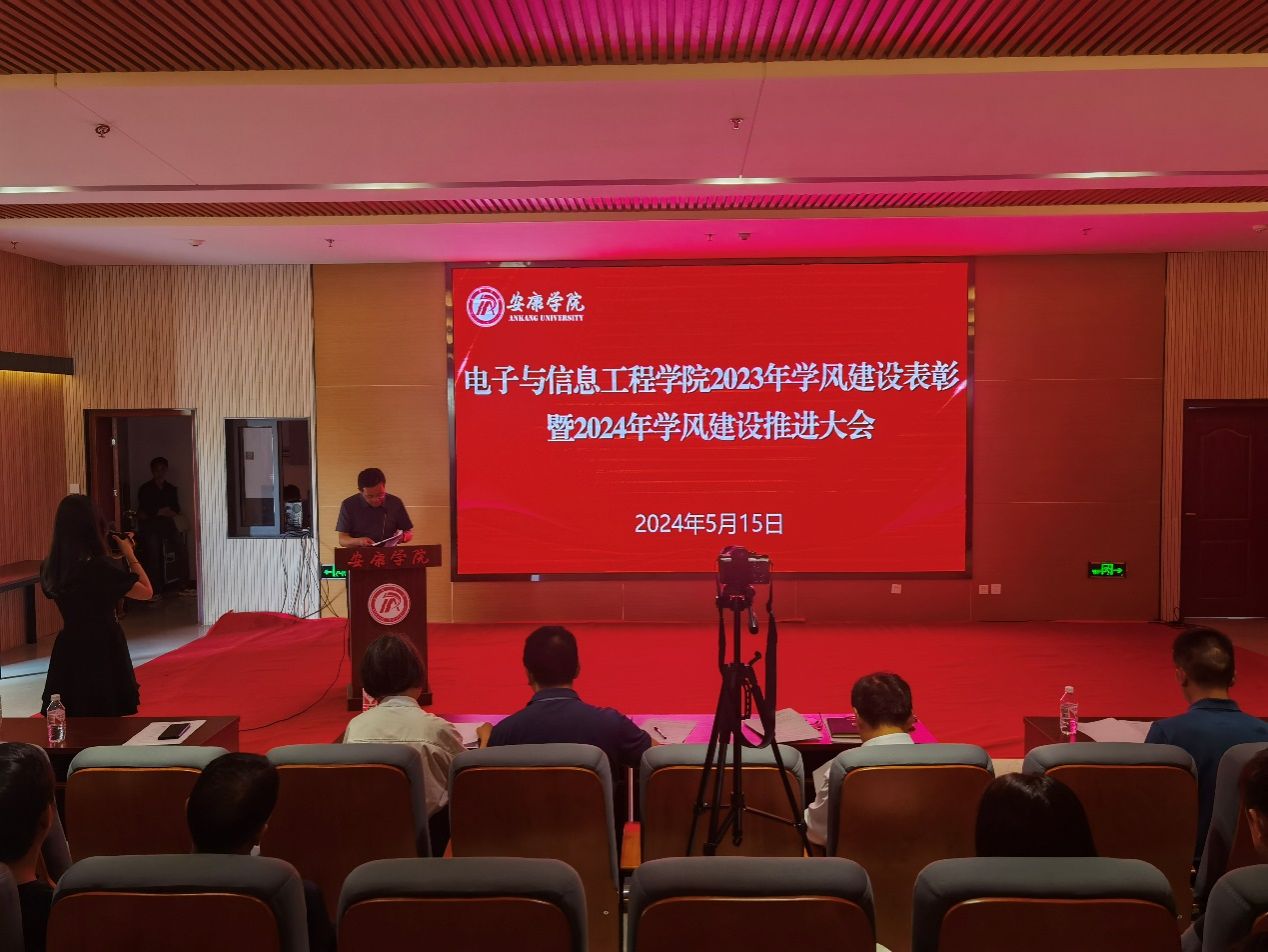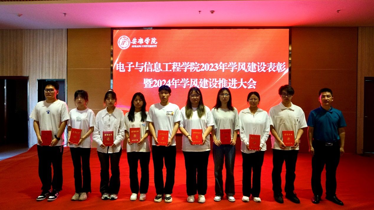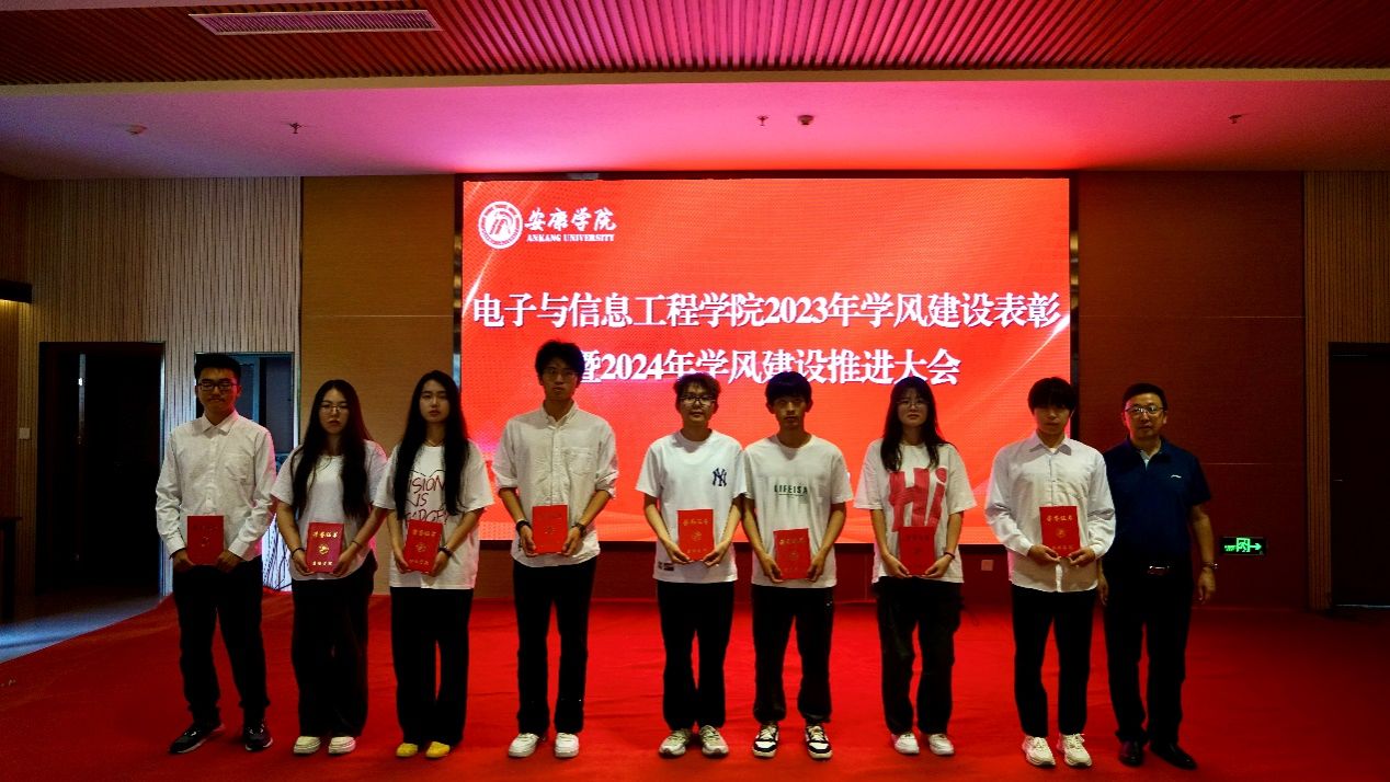 为培育优良学风,着力强化学风建设整体性、协同性、主体性,电子与信息工程学院以迎接本科教育教学审核评估为契机,以加强学生思想政治教育为纲,以学风建设为龙头,以教育学生树立远大理想、明确学习目的、端正学习态度为核心,以班级建设和宿舍管理为重点,以制度建设为保障,融入学院特色、打造学院“五色”育人品牌,着力构建学风建设的长效机制。5月15日下午,电子与信息工程学院在江北校区图书馆报告厅召开了2023年学风建设表彰暨2024年学风建设推进大会。会议由党总支书记于咏梅主持,万象城娱乐awc线路全体教师、团总支学生会主要干部、2021、2022、2023级班团主要干部,受表彰学生代表参与。